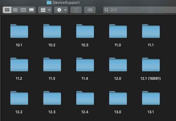 여기서 본인이 사용하는 Xcode에 없는 버전을 본인이 사용하는 Xcode의 DeviceSupport 폴더에 넣어주세요!
