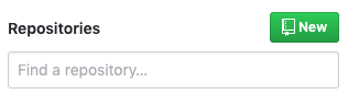 로그인 하시면 왼쪽 상단에 아래와 같은 repository 리스트에 대한 화면이 보입니다. 저기 ‘New 버튼’을 클릭해서 repository를 생성해주세요~